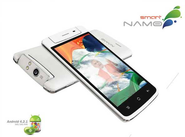 Найближчим часом індійським споживачам буде представлений новий оригінальний смартфон під довгою назвою Smart NaMo Saffron Wave, головною особливістю якого стане вбудований поворотний модуль з 8-Мпікс камерою з подвійним