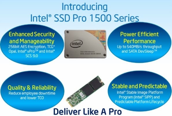 Intel представила професійні твердотільні накопичувачі серії SSD Pro 1500. Нові пристрої зберігання даних корпоративного рівня спроектовані спеціально для того, щоб забезпечити просте впровадження на підприємствах і ефективне управління з високим рівнем безпеки. Крім того, вони дозволяють зменшити сукупну вартість володіння і підвищити швидкість роботи.