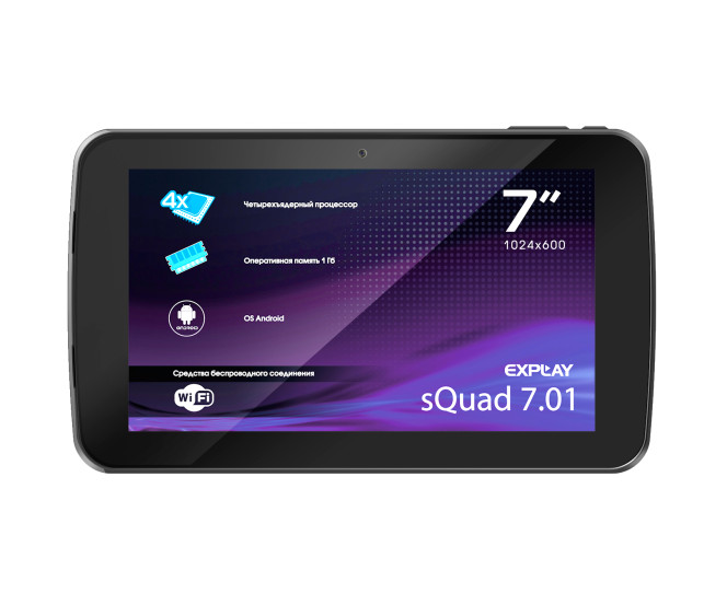 Планшет оснащений фронтальною камерою, вбудованим Wi-Fi - модулем (підтримуються стандарти 802.11 (b/g/n), роз'ємом для підключення зовнішнього 3G-модема і вбудованою А-GPS системою, для безпосереднього визначення координат мобільного пристрою без отримання даних безпосередньо від супутників. Інформація про стан навігаційних супутників надходить від налаштованого інтернет з'єднання. Не дивлячись на те, що корпус пристрою виконаний з металу, вага планшета становить всього 290 грамів. Для додаткової зручності і захисту в комплекті йде фірмовий чохол від Explay. Орієнтовна вартість нової моделі Explay sQuad 7.01 157 доларів.