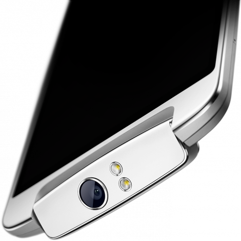 Так, Oppo N1 оснащений 13-мегапіксельною камерою, здатною змінювати кут нахилу на 206 Градусів. В результаті, ви можете знімати у високому дозволі не тільки пейзажі, міські ландшавты, портрети друзів і т.д. - тобто, все те, що знаходиться позаду смартфона, але і автопортрети. Для цього досить просто повернути камеру до себе. Камера Oppo N1 наділена об'єктивом зі світлосилою f/2.0, складається з шести лінз, і має подвійний світлодіодний спалах.