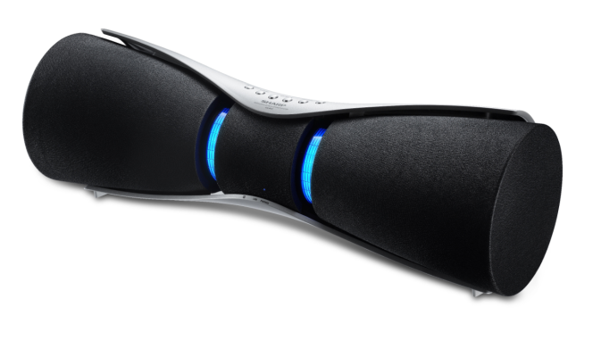 Sharp GX-BT7 має циліндричну форму, сучасний дизайн і характерний стиль. Світлодіоди ритмічно блимають в такт музиці, а електричний механізм, розводящий динаміки, відтворює оригінальний звук.