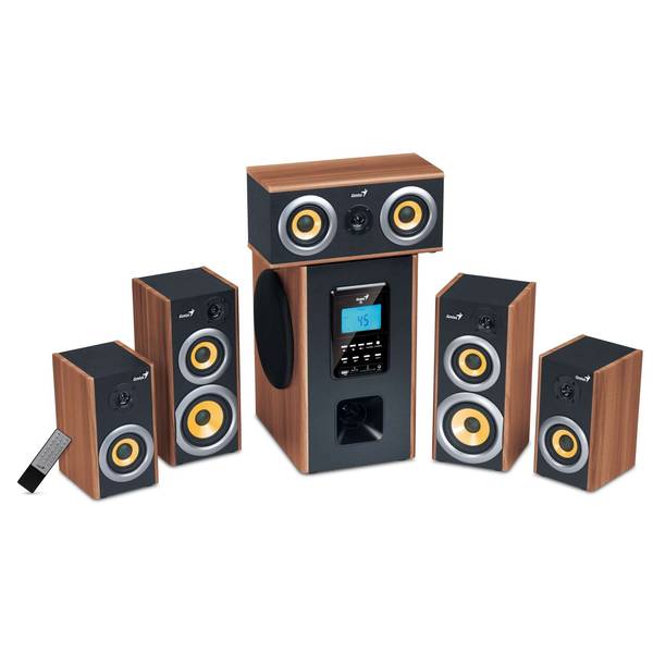 Genius представляє систему домашнього кінотеатру SW-HF5.1 5200 HD в дерев'яному корпусі з MP3-декодером в Україні. Ця аудіосистема класу Hi-Fi потужністю 150 Вт з шести компонентів в корпусі з вишневого дерева дозволяє повністю зануритися в об'ємний звук формату 5.1.