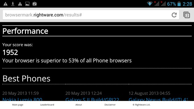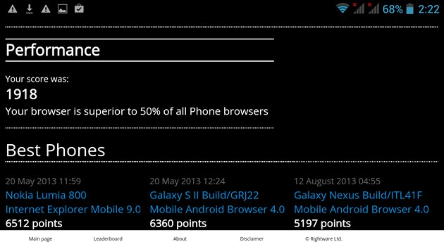 Браузерний тест Browsermark 2, який демонструє швидкість завантаження і відображення складних веб-стрниц, планшетофон IconBIT Mercury Quad NT-3507M: штатний браузер показав результат в 1918 балів, а браузер Chrome -1952 бали. Результат більш ніж приємний, і в цілому немає великої різниці, яким з цих двох найпопулярніших мобільних браузерів для перегляду веб-сторінок.