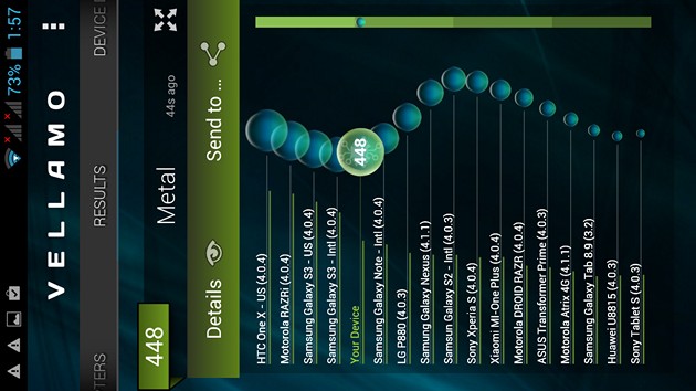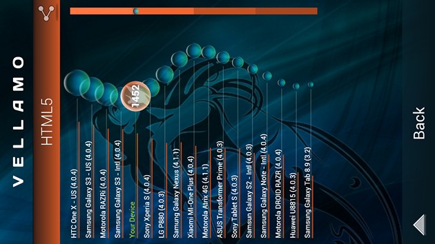 Тест Vellamo смартфон Mercury Quad NT-3507Мзавершил з результатом 1452/448 бали.