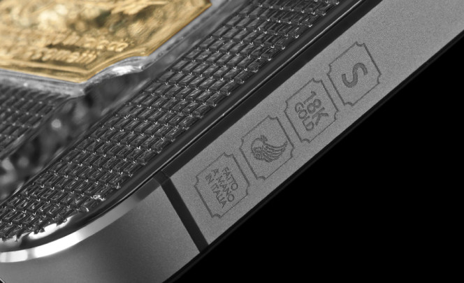Плавні лінії золотий хвилі не випадково нагадують «галочку» Vertu - знамениту прикмету, що вказує на вишукану розкіш, на приналежність до вищого ешелону. Ілля Джакометті переосмислив цей елемент, надав йому більше плавності, неспішності й грації. Дорогоцінна хвиля дбайливо несе логотип Caviar - золотого осетра. Традиційна золота табличка прикрашена автографом Іллі Джакометті з правом першого підпису, як символом відповідальності та гарантії за досконалість кожного елемента унікального телефону.