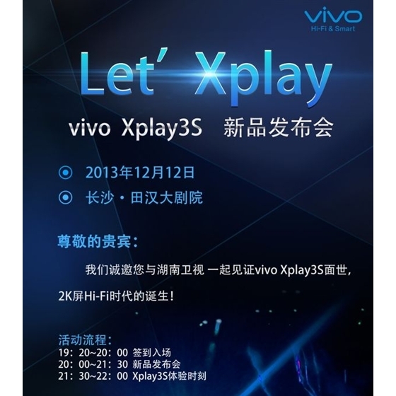 Нагадаємо, характеристики Vivo Xplay 3S включають чотирьохядерний процесор Qualcomm Snapdragon 800 (8974AB) з графікою Adreno 330, 3 Гб оперативної пам'яті, підтримку мереж четвертого покоління LTE (FDD / TDD). Діагональ екрану смартфона складе 5,5 або 5,7 дюймів, діафрагма тильної камери - f/1,8. Апарат працює під управлінням ОС Android (можливо, 4.4 KitKat).