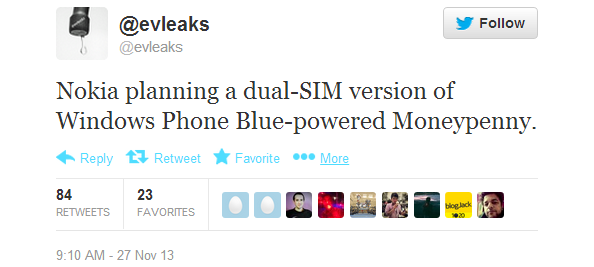 Інформаційний ресурс Evleaks зовсім недавно опублікував дані про те, що компанія Nokia готує до випуску новий смартфон з лінійки Lumia кодовою назвою Moneypenny, який одним з перших буде управлятися операційної системи Windows Phone 8.1 Blue.