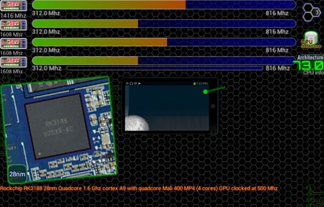 - Процесор/чіпсет: RockChip RK3188 1,6 ГГц Quad Core