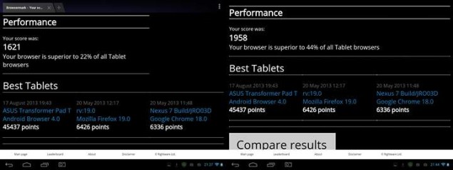 Браузерний тест Browsermark 2 для планшета MultiPad 4 QUANTUM 7.85: штатний браузер Android показав результат в 1621 бал, а Chrome - в 1958 балів. Веб серфінг відбувається з невеликими затримками при використанні штатного браузера, у випадку з Chrome таких нюансів немає.